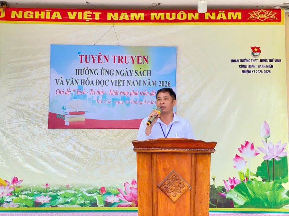 Vừa qua, ngày 20/04/2026 trong tiết chào cờ đầu tuần, Trường THPT Lương Thế Vinh đã tổ chức hoạt động tuyên truyền hưởng ứng Ngày Sách và Văn hóa đọc Việt Nam với chủ đề: “Sách – Tri thức – Khát vọng phát triển đất nước”.