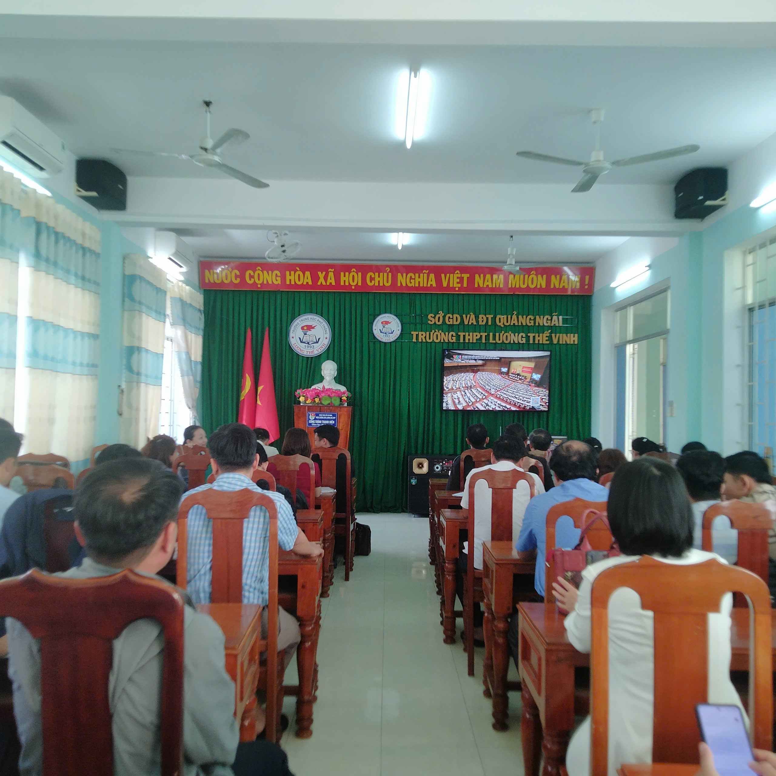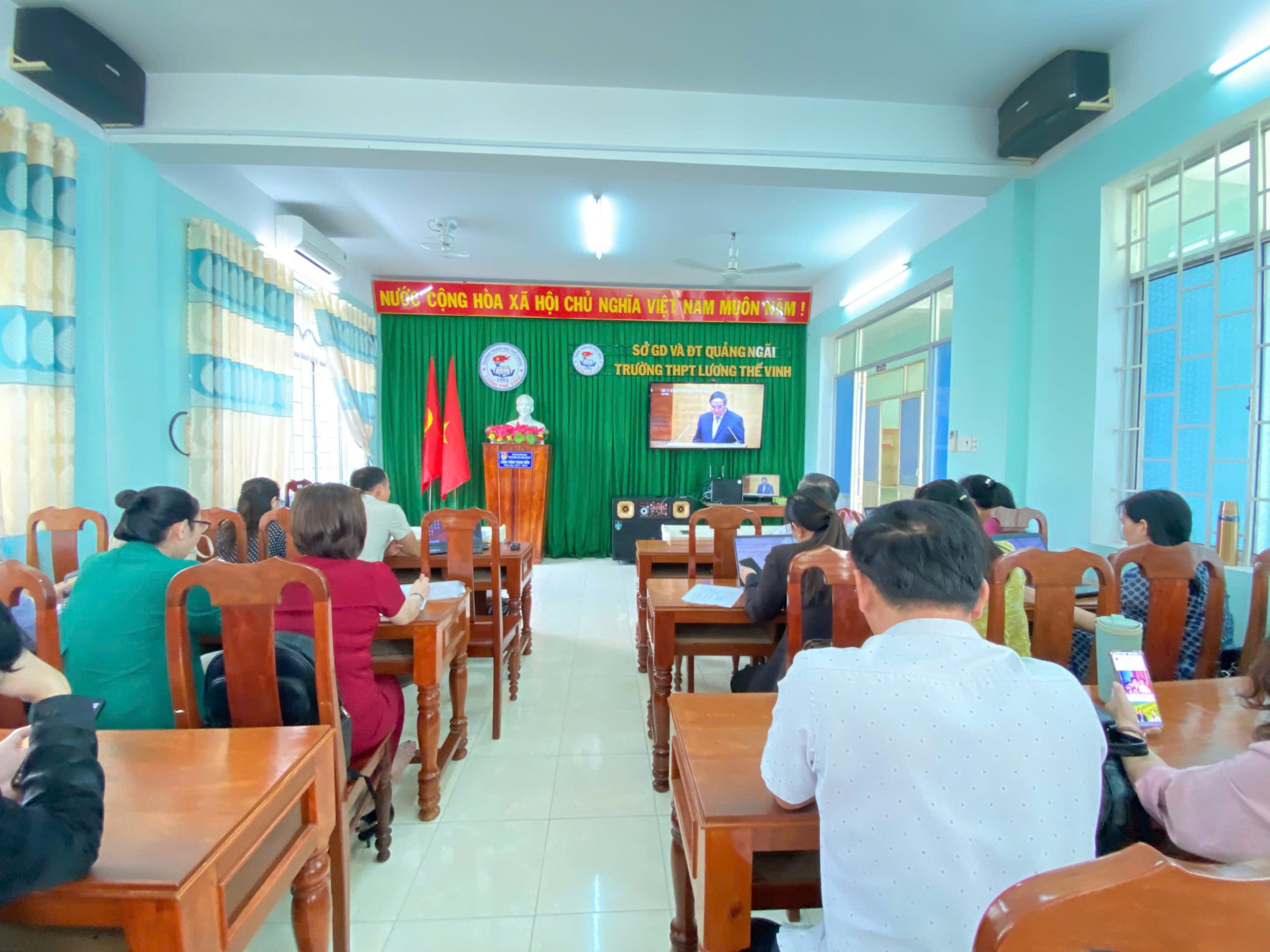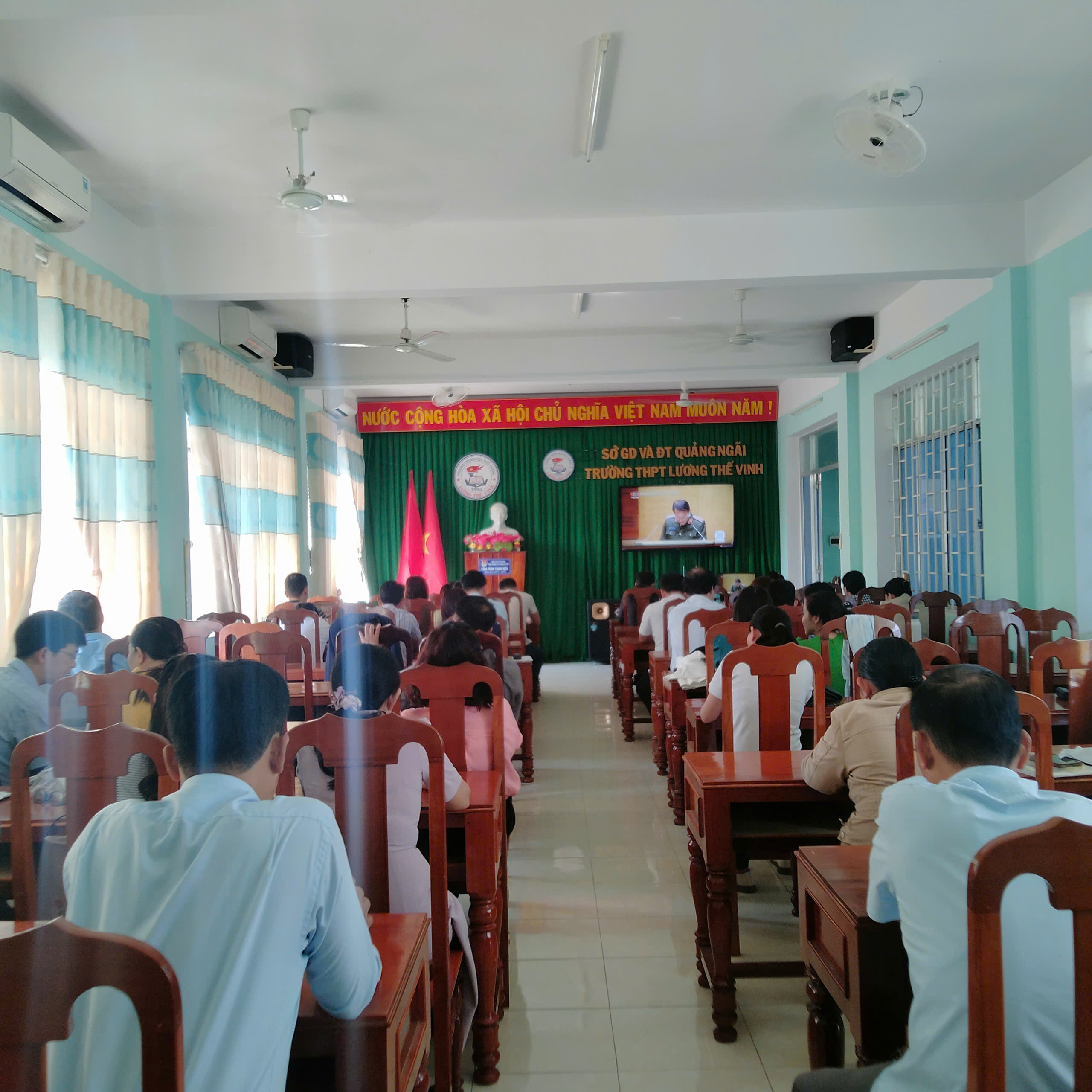 Sáng ngày 07/02/2025 Trường THPT Lương Thế Vinh đã tổ chức tiếp sóng trực tuyến Hội nghị toàn quốc nghiên cứu, học tập, quán triệt và triển khai Nghị quyết Đại hội đại biểu toàn quốc lần thứ XIV của Đảng với hơn 60 cán bộ, giáo viên và nhân viên Nhà trường tham dự.