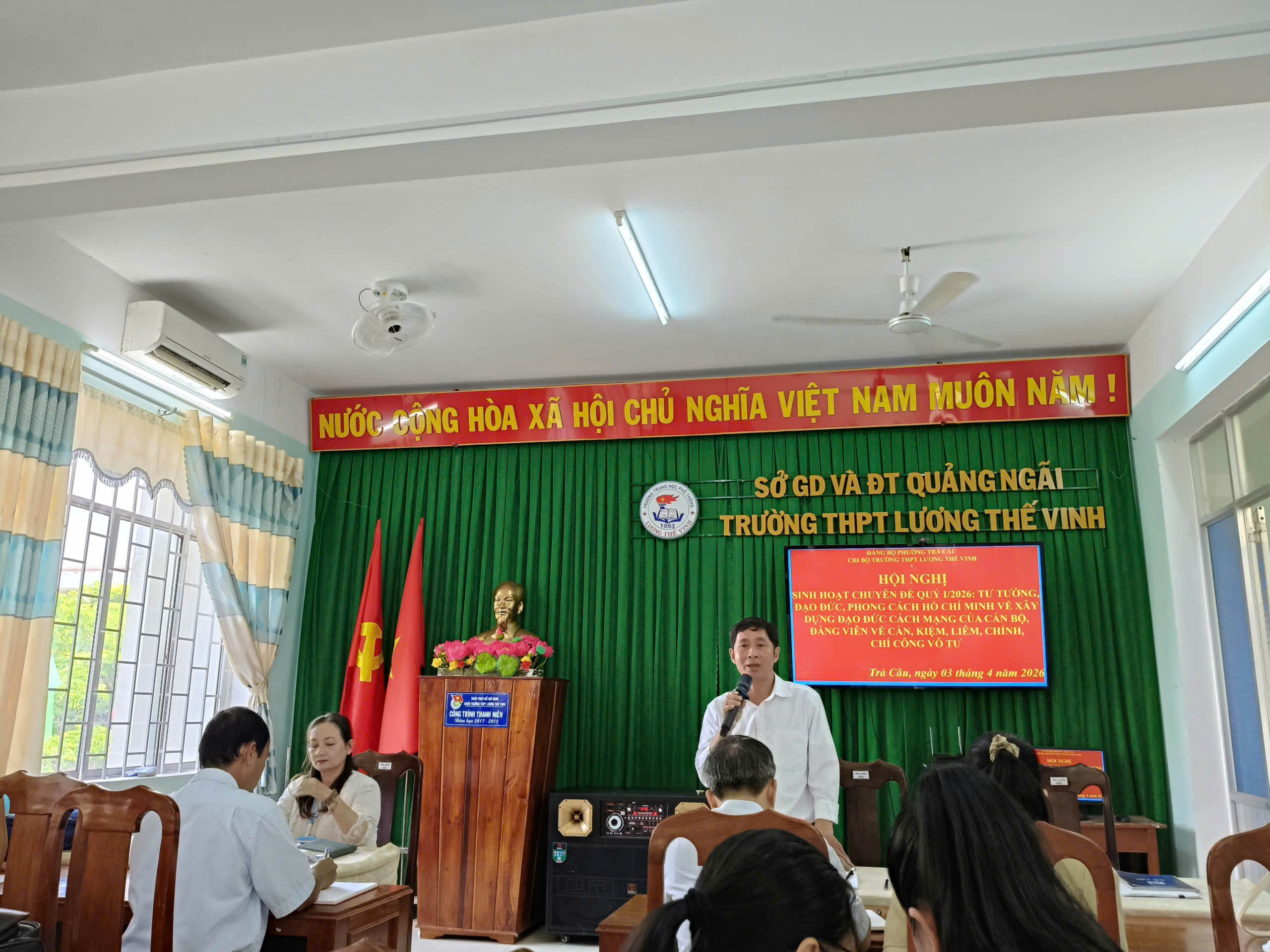 Vừa qua ngày 03/4/2026, Trường THPT Lương Thế Vinh đã tổ chức sinh hoạt chuyên đề với nội dung: Tư tưởng, đạo đức, phong cách Hồ Chí Minh về Xây dựng đạo đức cách mạng của cán bộ, đảng viên về cần, kiệm, liêm, chính, chí công vô tư.