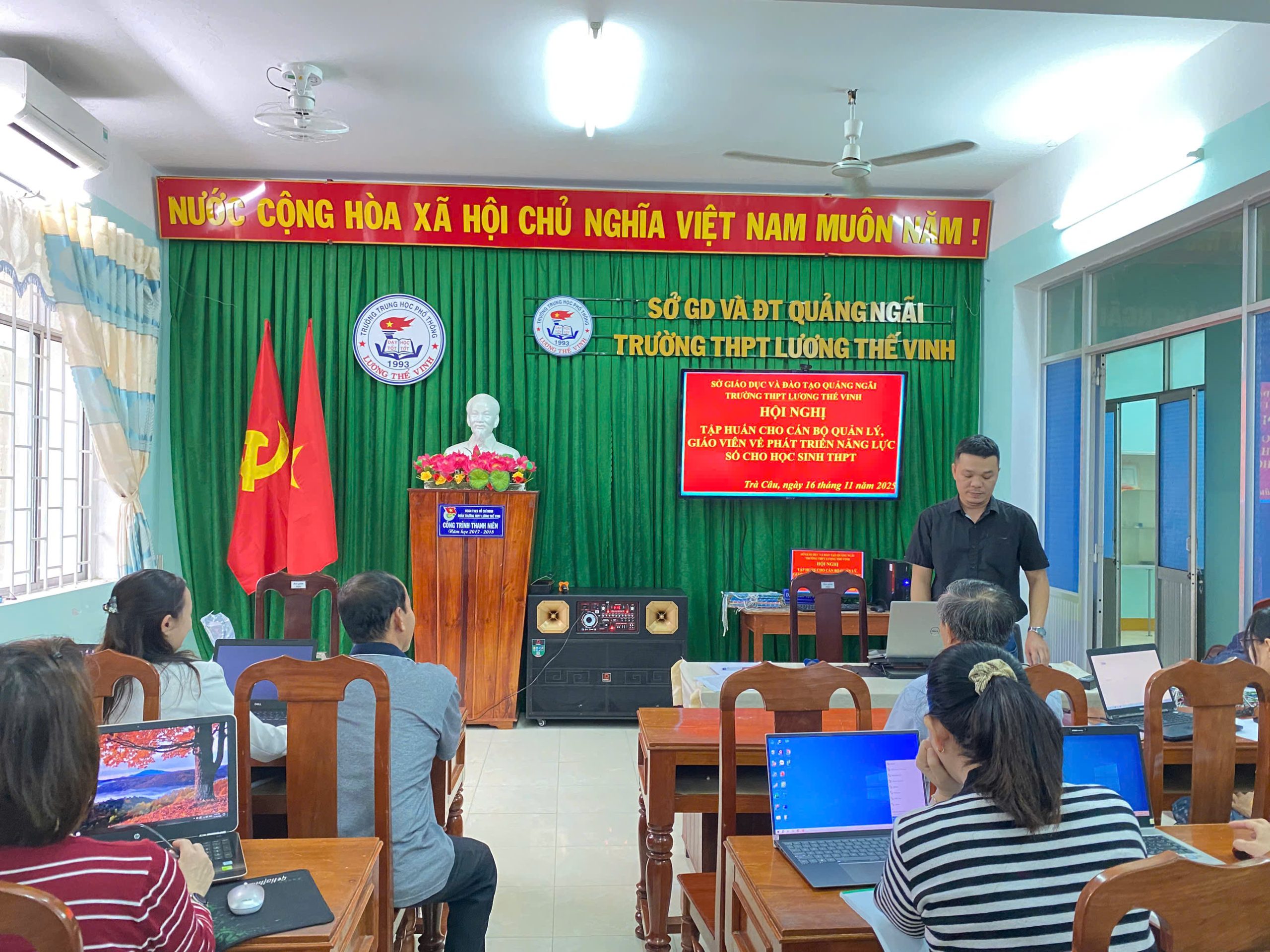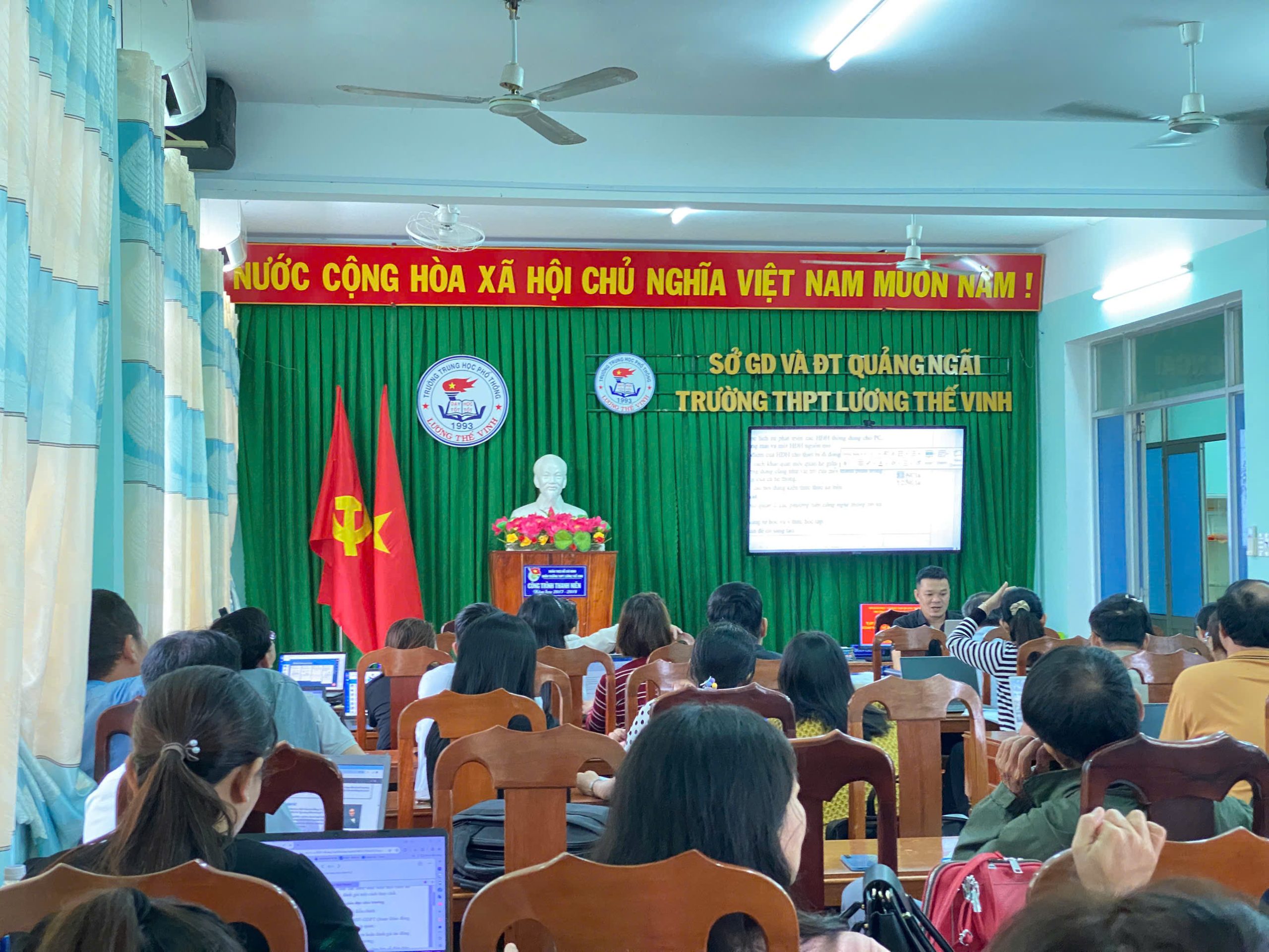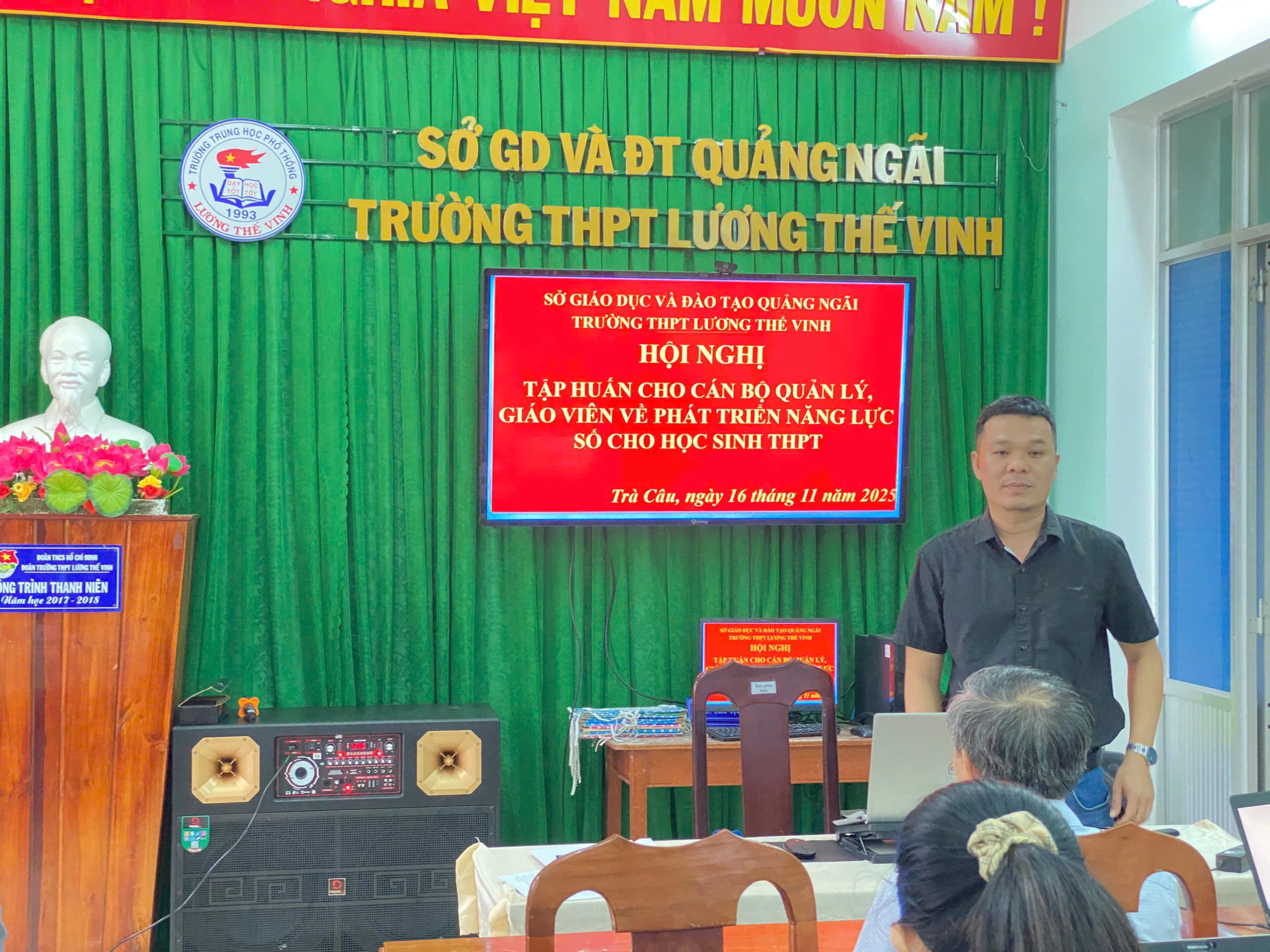 Thực hiện Công văn số 1779/SGDĐT-GDTrH ngày 24/10/2025 của Sở GD và ĐT Quảng Ngãi về việc tập huấn CBQL, GV về phát triển năng lực số cho học sinh THCS, THPT. Thực hiện Kế hoạch số 112/KH-LTV ngày 12/11/2025 của Trường THPT Lương Thế Vinh về việc triển khai tập huấn cán bộ quản lý, giáo viên về phát triển năng lực số cho học sinh trung học phổ thông. Vào lúc 08 giờ 00 ngày 16/11/2025 tại Phòng họp trường THPT Lương Thế Vinh đã tổ chức tập huấn lại cho cán bộ quản lý, giáo viên về phát triển năng lực số cho học sinh. Thành phần tham dự: Lãnh đạo Nhà trường và toàn thể giáo viên trong Nhà trường. Nội dung tập huấn tập trung vào hướng dẫn xây dựng kế hoạch giáo dục Nhà trường nhằm triển khai dạy học phát triển năng lực số cho học sinh theo Chương trình giáo dục phổ thông 2018. Nghiêm túc tham gia tập huấn là bước đầu của việc xây dựng và thực hiện kế hoạch giáo dục Nhà trường nhằm phát triển năng lực số cho học sinh tại Nhà trường.
